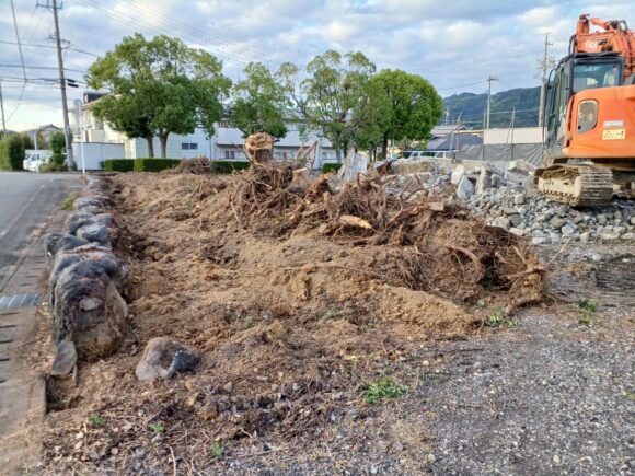 敷地が広いおかげで、重機(ユンボなど)の操作スペースをたっぷり確保できました。